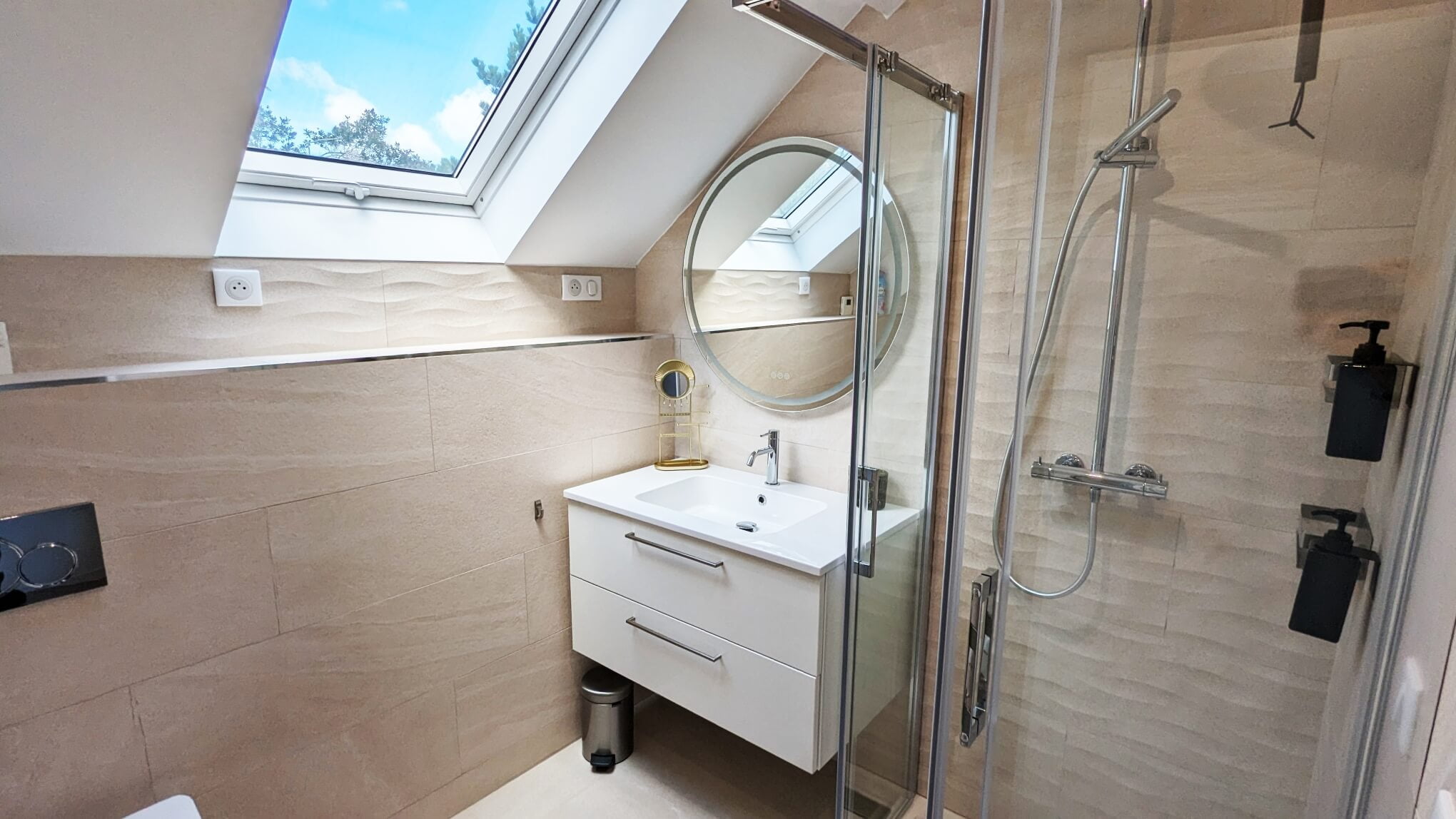 Nous avons investi dans des ballons d’eau chaude instantanés qui vous permettent de prendre quatre douches consécutives à chaque étage, avec un temps de chauffe d’environ 20 minutes pour les douches suivantes.